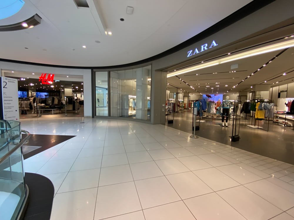 - Level 1: Main anchors include H&M and Zara which continue up to the upper level.